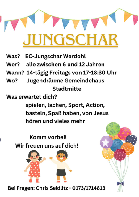 Programm für 2026 21.01. Werwolf 28.01. The Chosen 04.02. Billard, Kicker, Dart 11.02. Dr. Know 18.02. Casino 25.02. Diakonie 04.03. Spazieren 11.03. Activity 18.03. Eier färben |